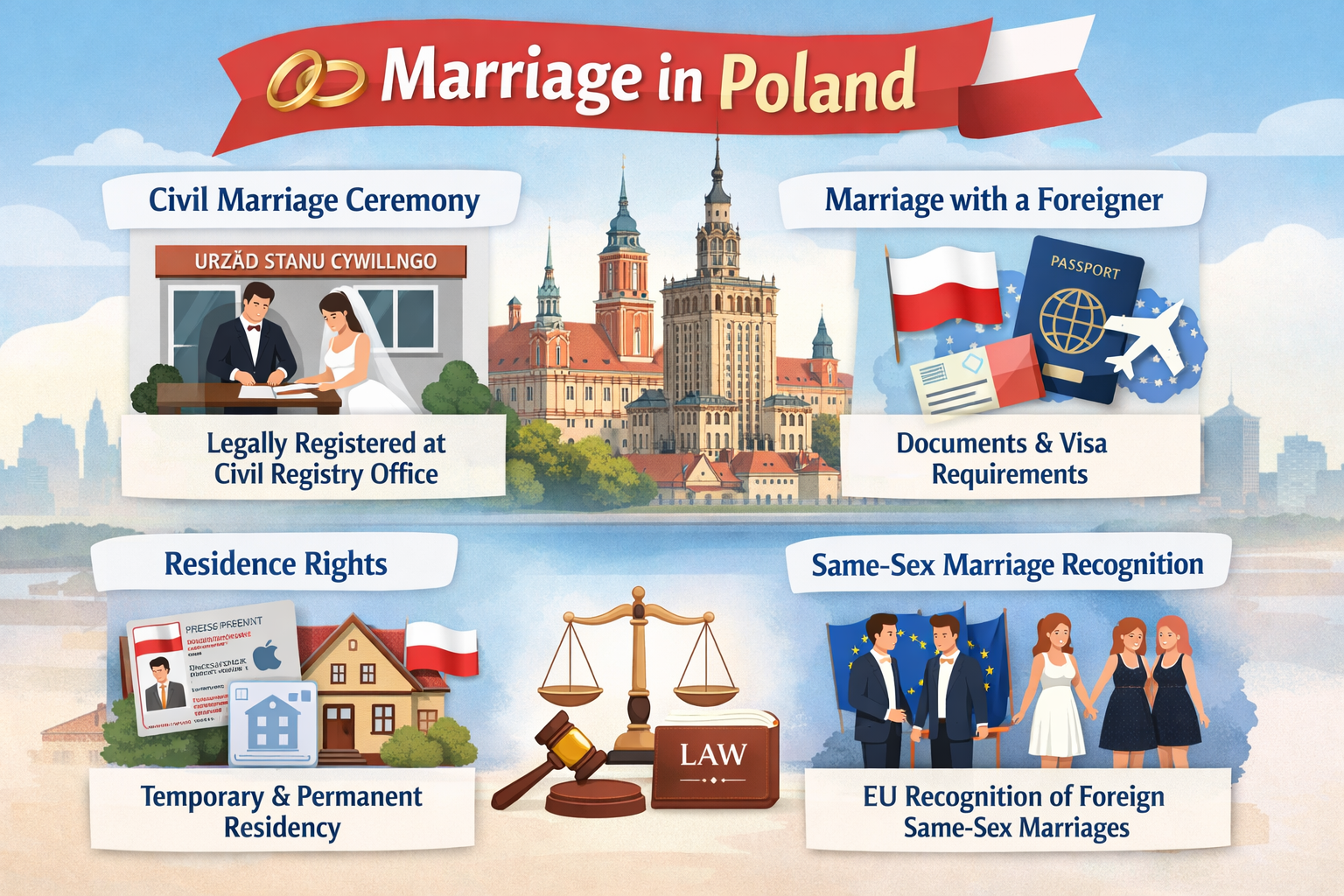 महत्वपूर्ण: यी अनुमति नागरिकता होइन। विवाहले स्वतः पोल्यान्ड नागरिकता दिन्छ भन्ने होइन; नागरिकता चाहिँ फरक कानुनी प्रक्रिया र योग्यता पूरा गरेपछि मात्र प्राप्त हुन्छ।