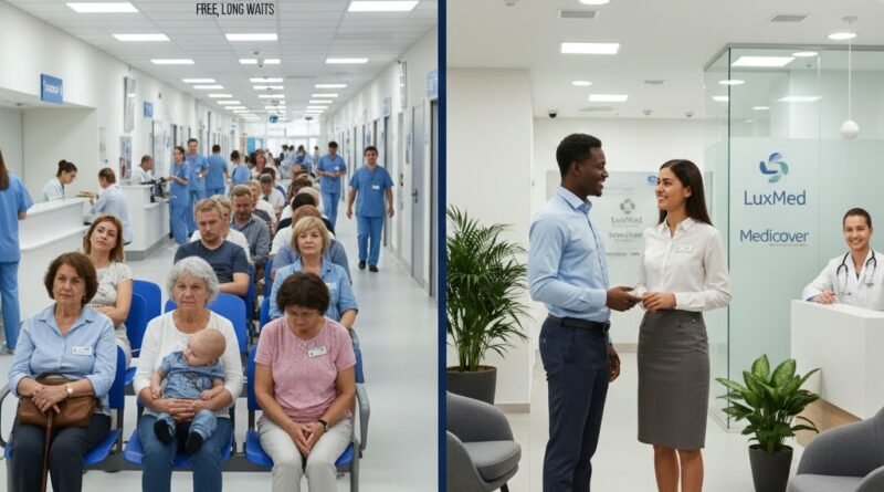 सरकारी सेवामा लाग्ने लामो समय (Waiting Time) बाट बच्न पोल्यान्डमा निजी स्वास्थ्य सेवा निकै फस्टाएको छ। LuxMed, Medicover, र Enel-Med यहाँका सबैभन्दा ठूला निजी सेवा प्रदायकहरू हुन्। धेरैजसो कर्पोरेट कम्पनीहरूले आफ्ना कर्मचारीहरूलाई मासिक ५० देखि २०० PLN सम्मको मेडिकल प्याकेजहरू उपलब्ध गराउँछन्। यी प्याकेजहरूले निजी क्लिनिकमा १-३ दिन भित्रै विशेषज्ञ भेट्ने सुविधा दिन्छन्। निजीमा डाक्टरहरूले प्रायः अंग्रेजी बोल्ने हुनाले विदेशीहरूका लागि यो निकै सहज हुन्छ। यदि तपाईंको कम्पनीले प्याकेज दिएको छैन भने पनि तपाईंले व्यक्तिगत रूपमा यस्तो प्याकेज किन्न सक्नुहुन्छ। निजी क्लिनिकहरूमा सफाइ, प्रविधि र सेवाको स्तर सरकारीको तुलनामा निकै आधुनिक र आरामदायी हुन्छ।