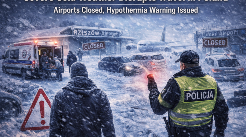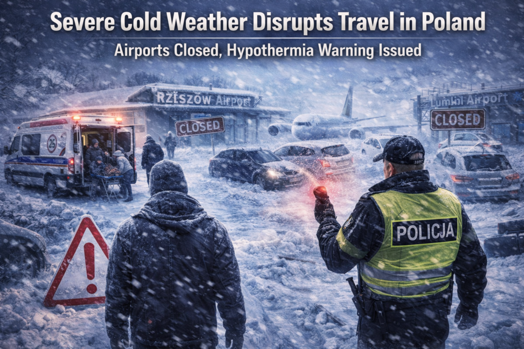 पोल्यान्डका विभिन्न क्षेत्रमा हालको अत्यधिक चिसो, भारी हिउँ र खराब मौसमका कारण यात्रामा ठूलो अवरोध उत्पन्न भएको छ। विशेषगरी Rzeszów र Lublin एयरपोर्टले अस्थायी रूपमा उडान सेवा रोक्नुपरेको छ। धेरै उडान रद्द वा ढिला भएका कारण यात्रुहरू त्रसित भएका छन्, र एयरपोर्ट परिसरमा असुविधा बढेको छ।