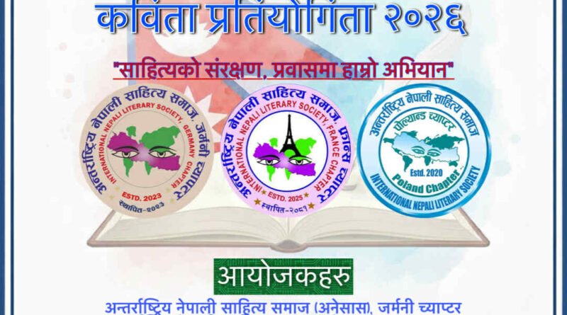 अन्तर्राष्ट्रिय नेपाली साहित्य समाज (INLS / अनेसास) को ३५औँ स्थापना दिवसको शुभ अवसरमा युरोपमा रहेका नेपाली साहित्यिक मनहरूलाई लक्षित गर्दै “युरोपस्तरीय खुल्ला कविता प्रतियोगिता २०२६” आयोजना हुने भएको छ।
