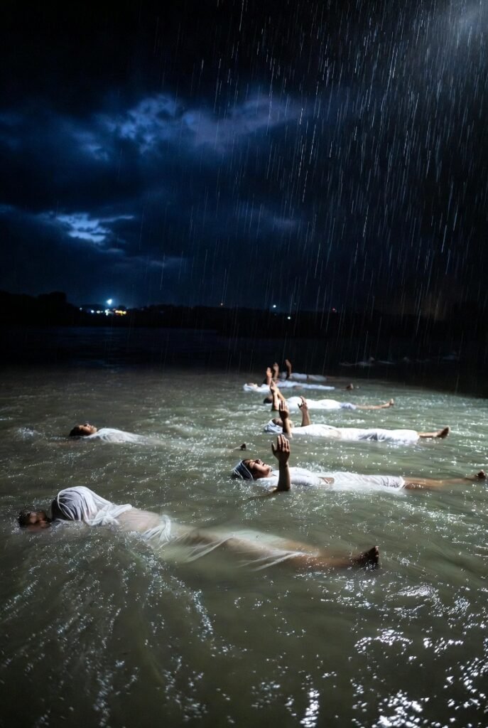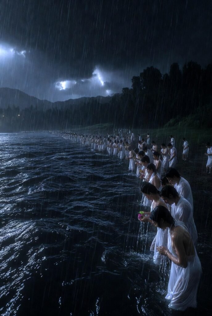 रातभरि अनुष्ठान चल्यो। सबैले नदी किनारमा शुद्ध स्नान गरे, सेतो वस्त्र धारण गरे— जसरी मृत्युको लागि तयार भएका शुद्ध, पवित्र आत्माहरू। अन्तिम आरती गरे, हात समातेर “सत्य धर्मको जय होस्”, “न्याय होस्”, “समानता होस्” भन्दै मन्त्र जपे। योगमायाले आँसु झार्दै, तर आवाजमा अटल दृढता बोकेर सम्झाइन्— “यो अधर्मी, पापले भरिएको, अन्यायले सडिएको संसारमा बाँच्नुभन्दा जल-समाधि लिनु श्रेयस्कर छ। यो मृत्यु होइन, यो त सत्यको आलिंगन हो। हामी मरेर पनि बोल्छौं। हाम्रो बलिदानले अन्यायको मुख बन्द हुनेछैन, बरु चर्को स्वरमा बोल्नेछ, विश्वलाई लज्जित बनाउनेछ।” झरीको थोपा हरेक आँसु झैं बर्सिरहे, बादल गडगडाइरहे— जसरी सम्पूर्ण प्रकृति ती पीडित आत्माहरूसँग रुन्छ जस्तो, तिनका पीडालाई महसुस गर्दै, क्रोधित हुँदै साथ दिइरहेकी थिइन्।