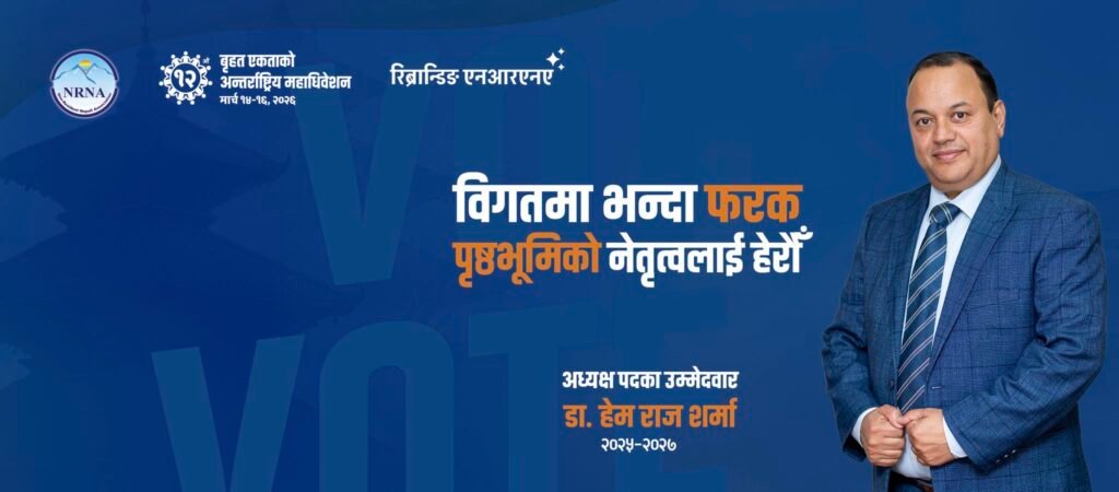 रिब्राण्डिङ्ग रोडम्याप’ सहित एनआरएनए अध्यक्षमा डा. हेमराज शर्माको उम्मेदवारी घोषणा