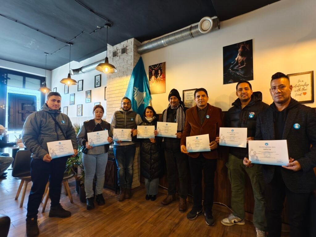 Warszawa (पोल्यान्ड), १ फेब्रुअरी २०२६ – राष्ट्रिय स्वतन्त्र पार्टी (रास्वपा) को प्रवास नेपाली सम्पर्क विभाग, पोल्यान्ड को नवनिर्वाचित कार्यसमितिले आज यहाँ औपचारिक शपथ ग्रहण तथा प्रमाणपत्र वितरण कार्यक्रम सम्पन्न गरेको छ।