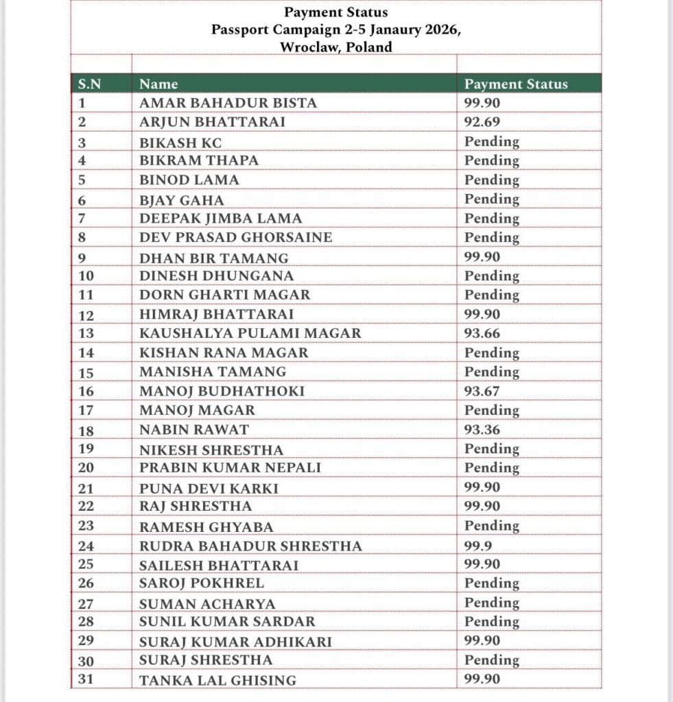 जर्मनीस्थित नेपाली दूतावासले पोल्याण्डको (Wrocław) मा जनवरी २ देखि ५, २०२६ सम्म सञ्चालन गरिएको राहदानी तथा कन्सुलर घुम्ती सेवासम्बन्धी महत्वपूर्ण सूचना सार्वजनिक गरेको छ।
